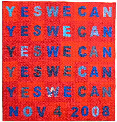 E à boa maneira americana, em que o quilting também é uma forma de expressão política, a Denyse Schmidt deu o seu contributo para a campanha de Obama com este quilt e a seguinte declaração: