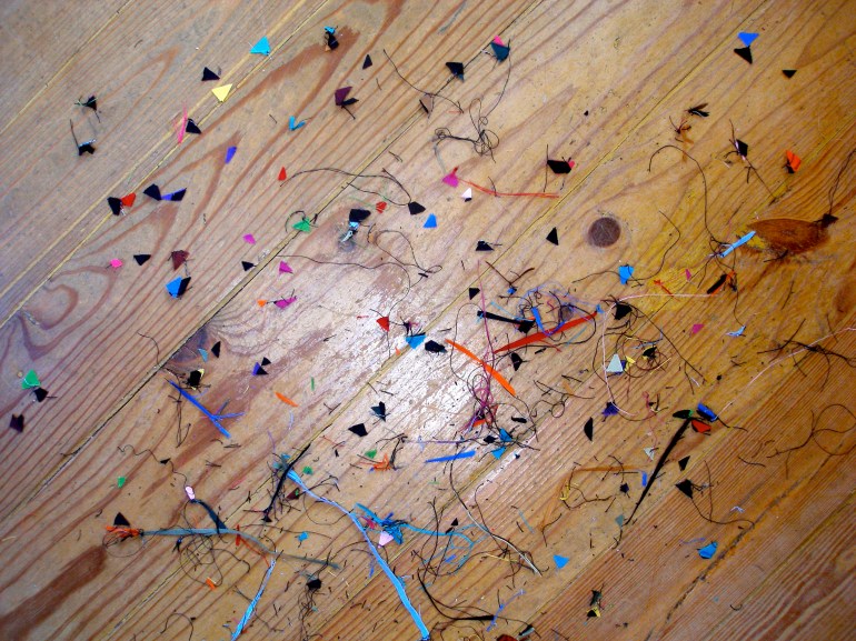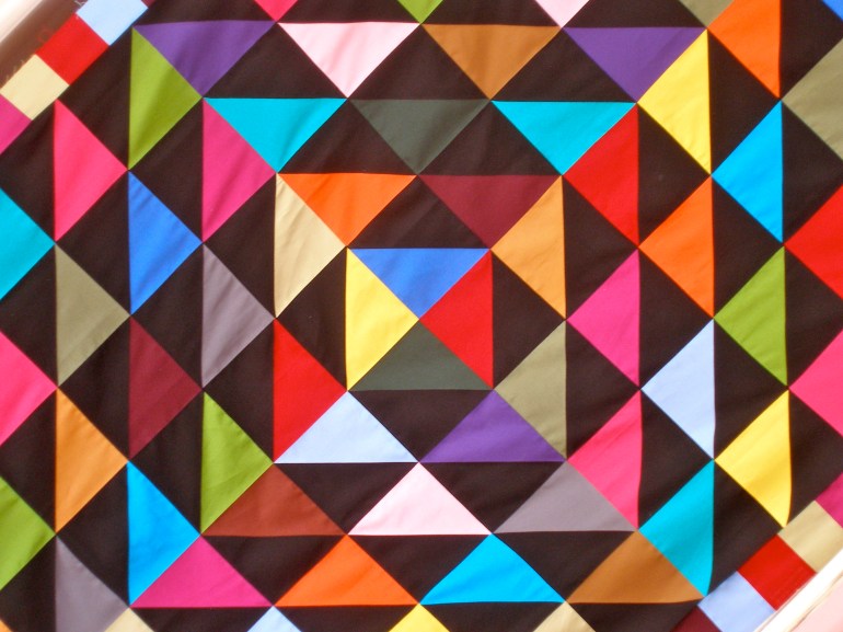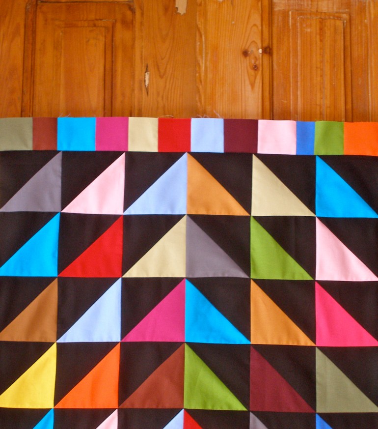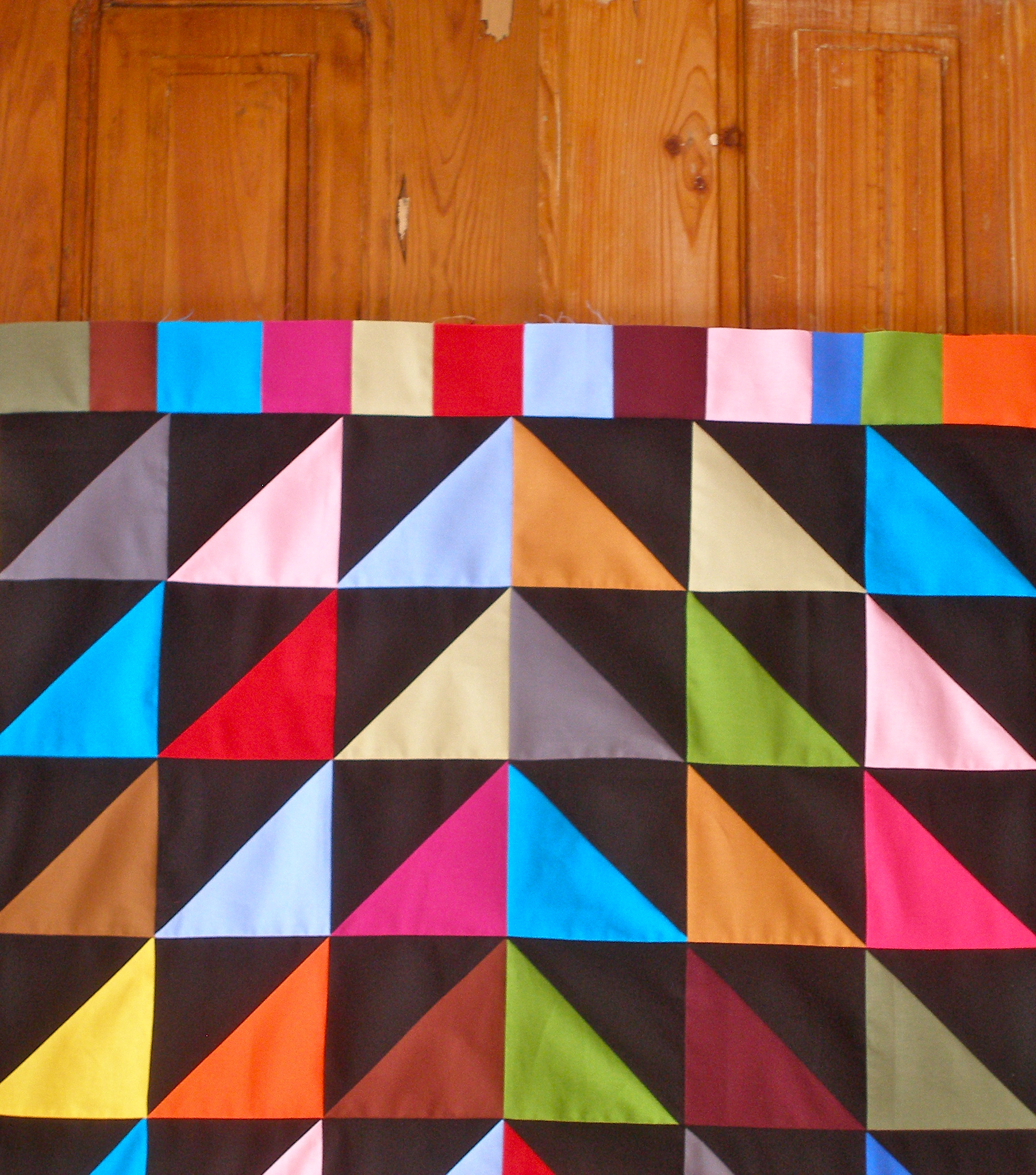 tudo o que sobrou foi à conta para fazer a cercadura de pequenos quadrados coloridos.