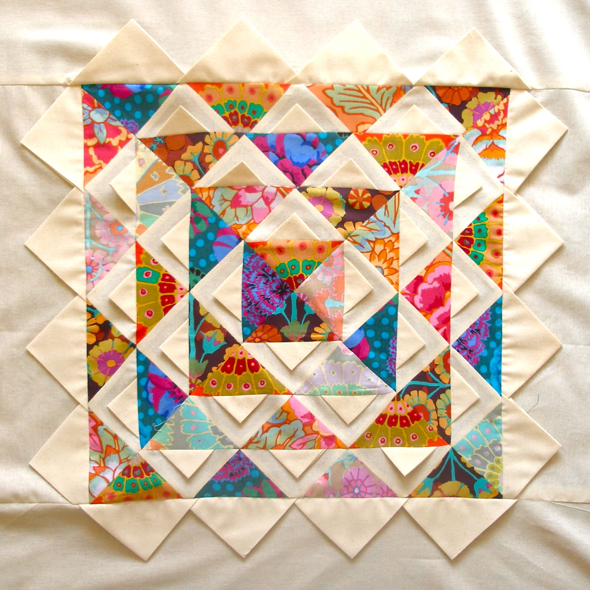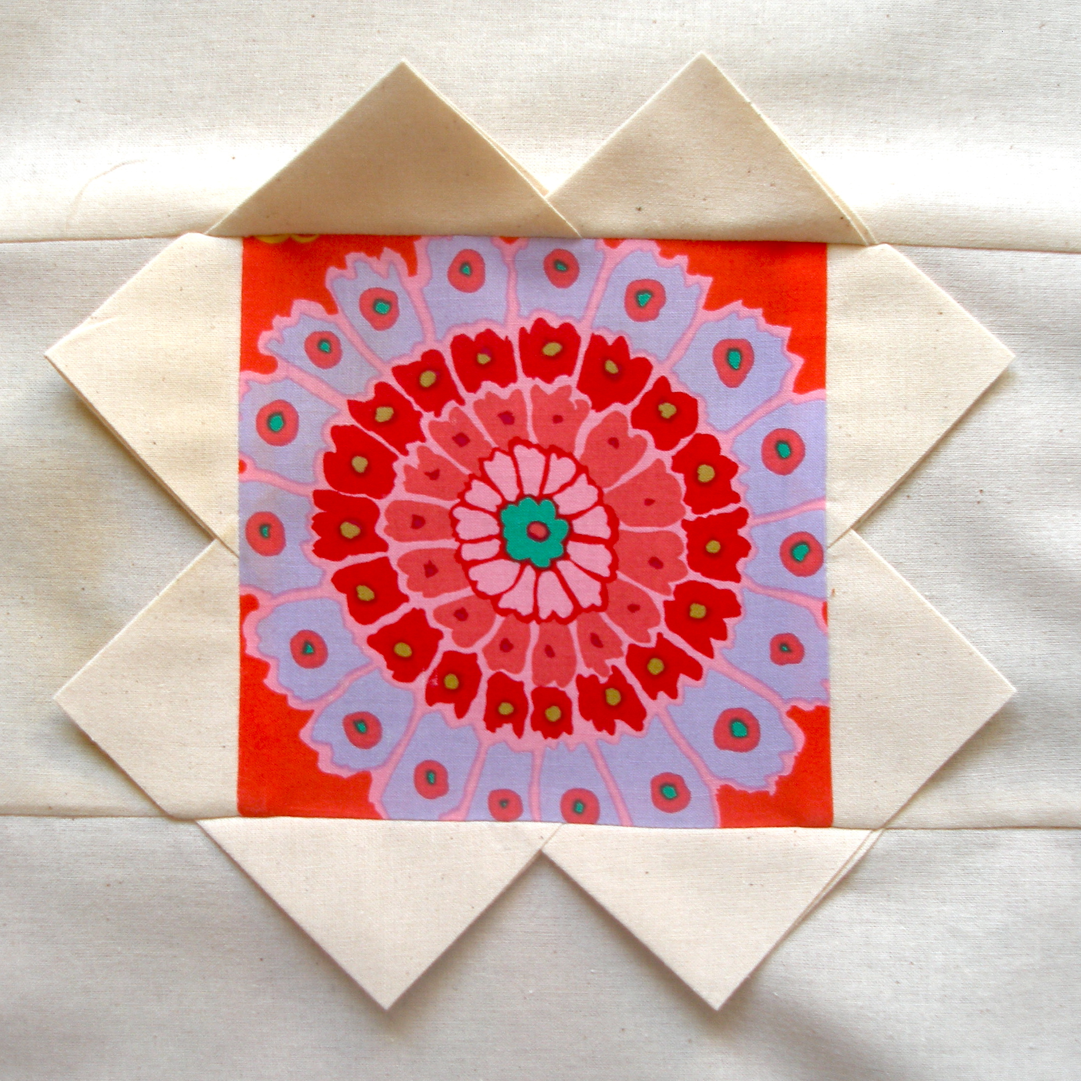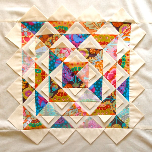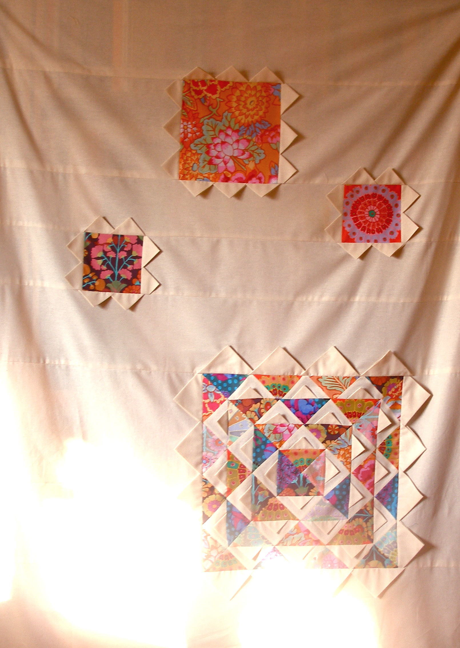 neste “lotus quilt” levei a técnica e o improviso ao extremo.