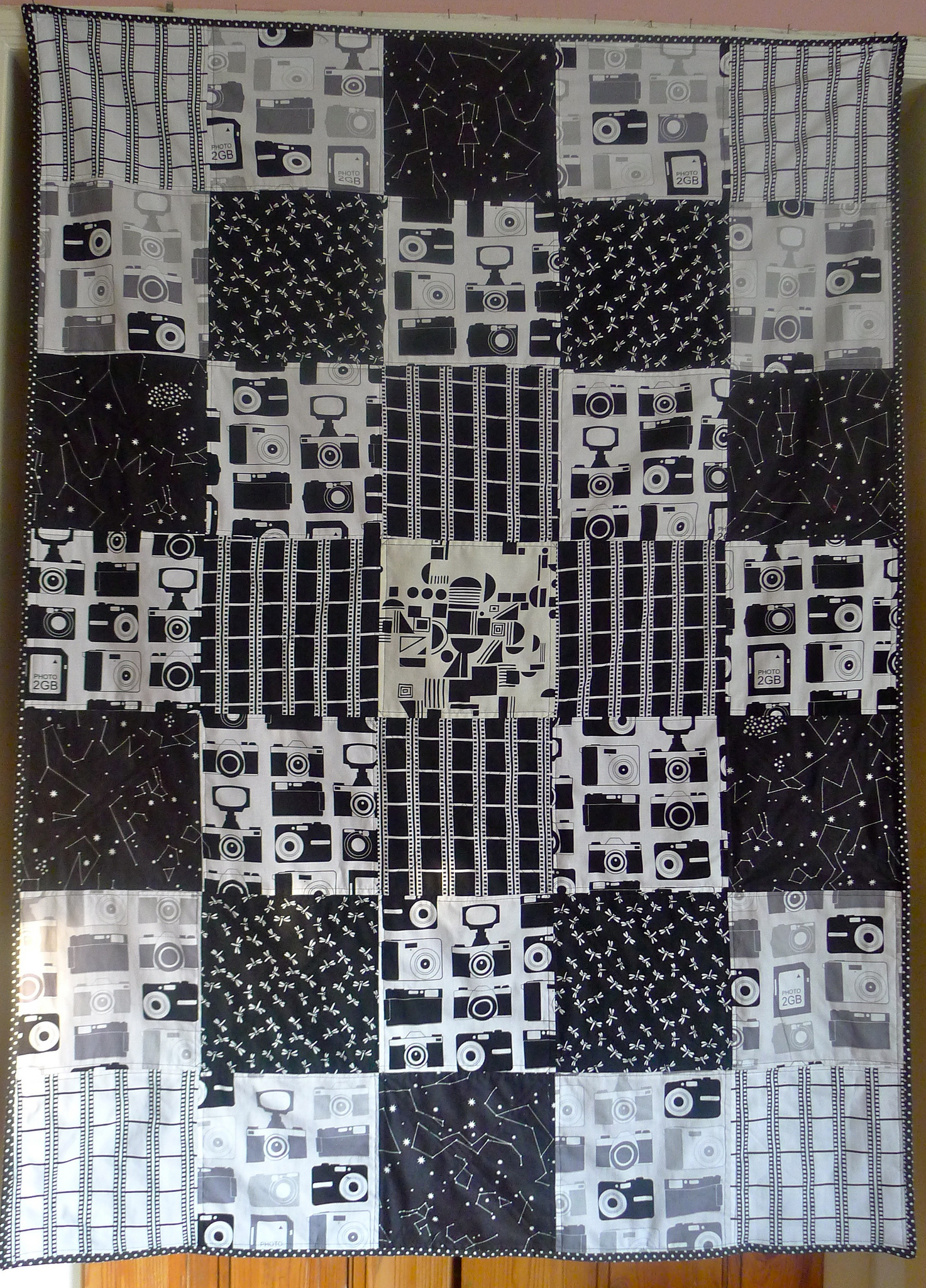 desta vez, inspirada num conjunto de tecidos de motivos fotográficos (com ilustrações de câmaras e película), resolvi fazer uma homenagem singela à fotografia clássica, a preto e branco, feita de químicos e papel, em vez de pixeis e megabites.