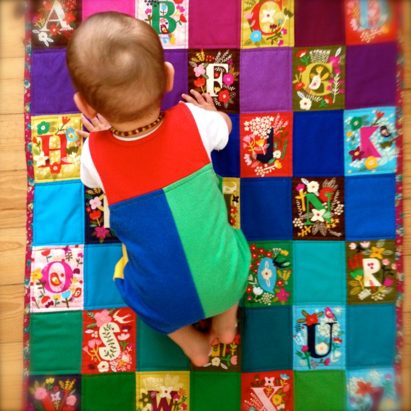 debruei com tecido de flores (trazido de Kathmandu e já usado nesta manta) e pespontei com linha contrastante.