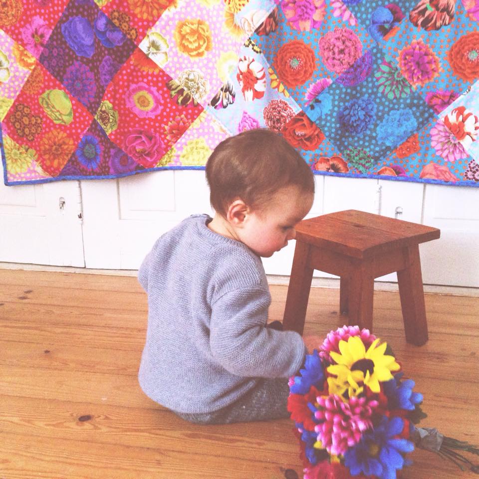 desta vez, usei um banquinho de madeira e o bouquet de flores artificiais que imortaliza aquele que foi o meu bouquet de noiva. a verdade é que parece ter sido feito de propósito para esta manta.