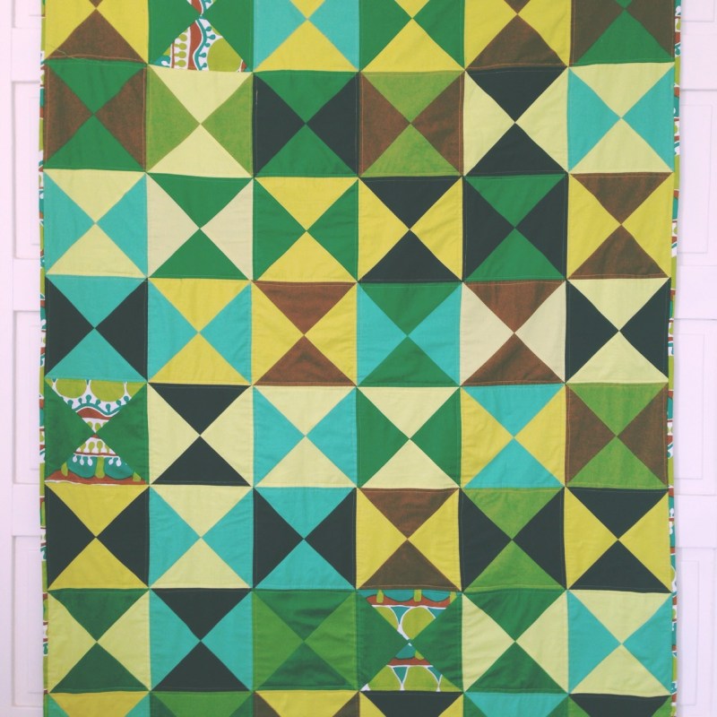 reunidos todos os blocos, dispostos de forma aleatória, tentando distribuir as cores de forma harmoniosa, nasceu esta manta verde.