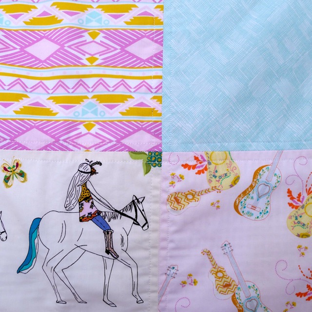 a última encomenda que entreguei foram duas mantas “iguais mas diferentes” para duas meninas irmãs. os tecidos – da coleção Anna Elise da Art Gallery Fabrics – foram escolhidos pela mãe a pensar nelas, no que gostam, na sua personalidade, nas cores dos seus quartos.