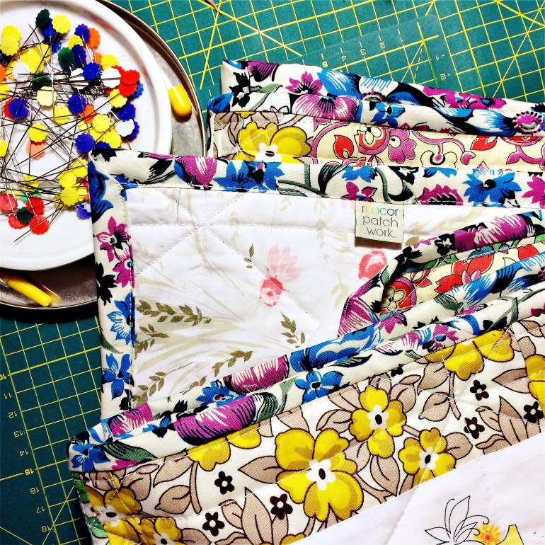 hoje foi um daqueles dias que valem por dois ou três: fiz uma manta do princípio ao fim! cortei, cosi, construi blocos, juntei-os, passei a ferro, juntei enchimento e tecido na parte de trás, passei outra vez a ferro, alinhavei, passei ainda outra vez a ferro, alfinetei, acolchoei, debruei e, desta forma, comecei e terminei uma manta no mesmo dia.