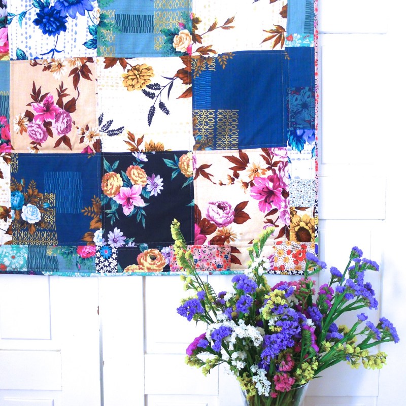 cortei os tecidos em grandes quadrados limitei-me a juntá-los uns aos outros, tentando distribuir da melhor forma o equilíbrio de cores e padrões.