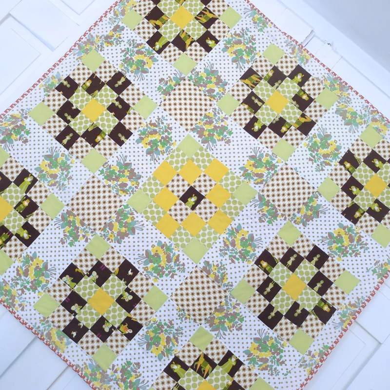 esta manta começou num workshop. uns dos blocos repetidos foi feito para exemplo de uma aula de quadrados: