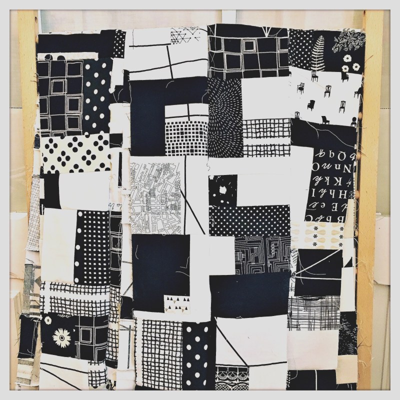 gostei tanto do resultado, e do desafio em si, que em 2018 resolvi fazer o mesmo, com as mesmas regras base – usar apenas restos de tecidos – mas desta vez decidi fazer os blocos apenas com tecidos pretos e brancos. fiz um diário rigoroso no instagram e houve várias pessoas que se juntaram a mim neste desafio. algumas não terão terminado, mas houve pelo menos uma que o fez, e não podia deixar de partilhar convosco o resultado desse esforço: